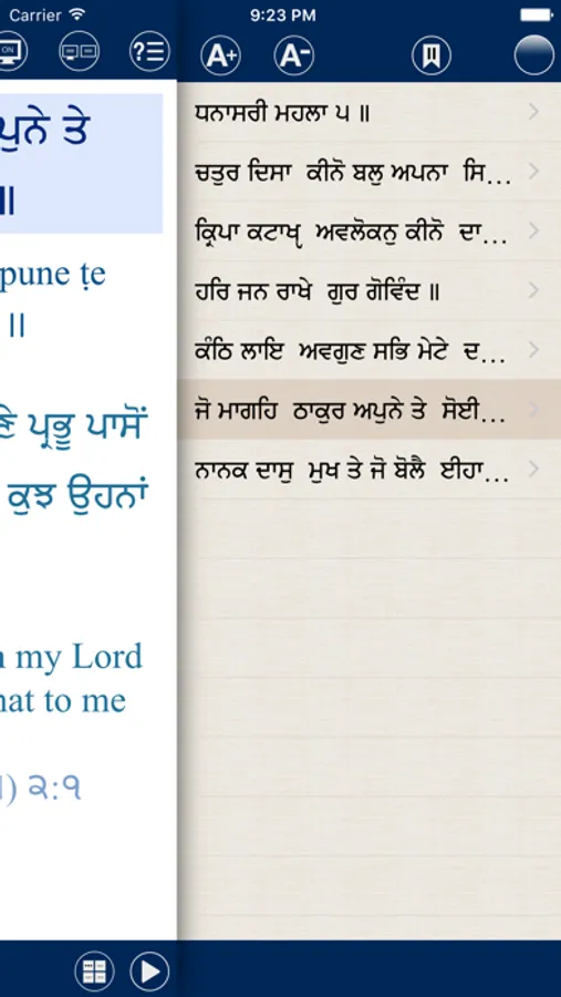 *In Sri Guru Granth Sahib and Sri Dasam Granth Sahib a pre-defined Bookmark list provided to access the listed links instantly