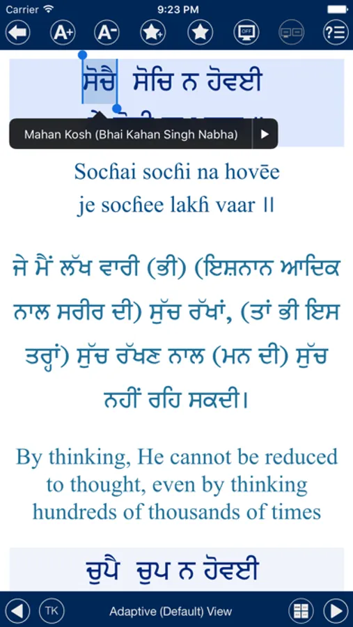 *Option to read the following searchable Kosh/Dictionaries of Gurbani: