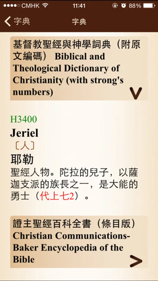 ‧ 字典內之連結:方便用戶繼續連結相關經文與字詞。