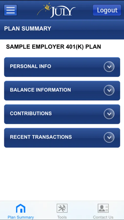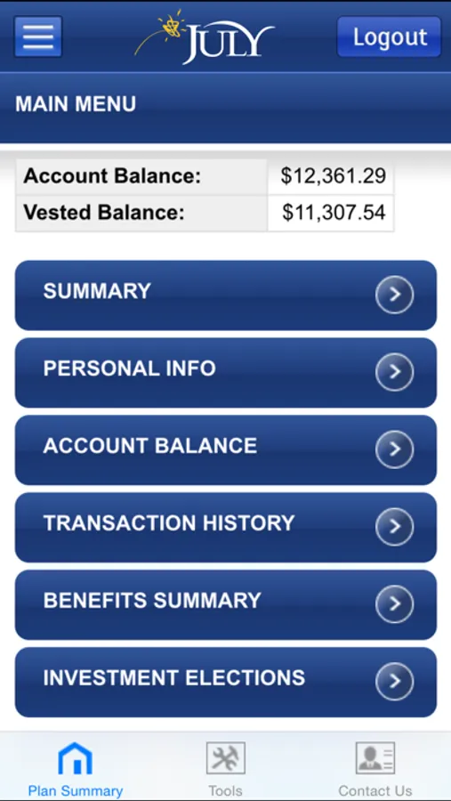 The JULY 401k app is provided to help you plan your retirement and view your account when you are away from the office or home. If your plan is on the JULY Retirement Platform, you have access to your plan that will allow you to perform the following functions: