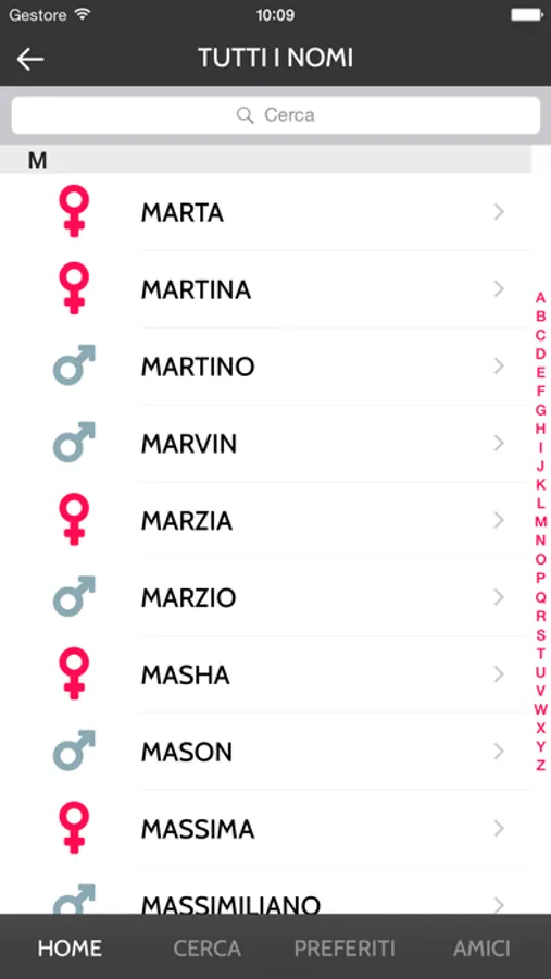 • Possibilità di aggiungere i nomi ad una lista di PREFERITI: crea la tua classifica di nomi preferiti