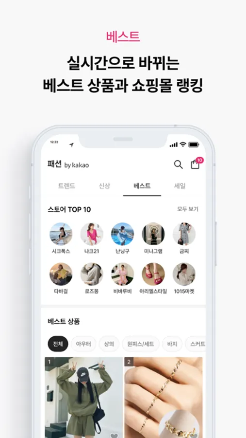 BEST - 지금 인기 있는 상품과 스토어를 랭킹별로 볼 수 있어요.