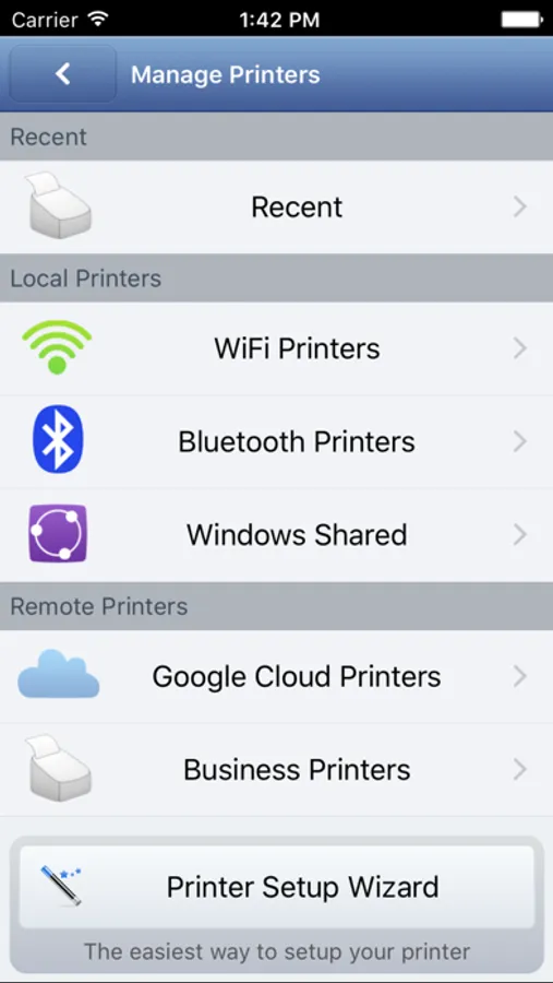 Most of the Wi-Fi printers are detected automatically. PrintHand can print on such printers directly in case they are supported by the app.
