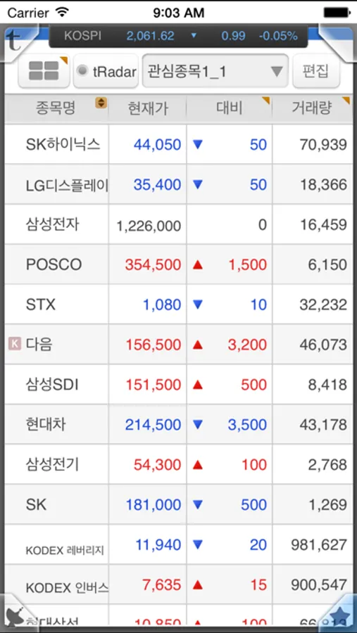 2. 관심종목 : 리스트/블록모드, 보유그룹, tRadar 연동
