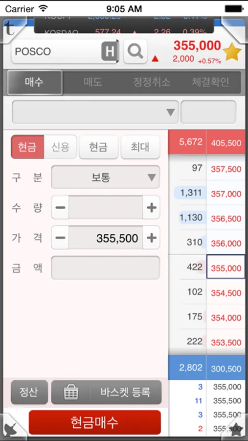 4. 주문 : 주식주문(현금/신용), 오더바스켓, 주문전용키패드
