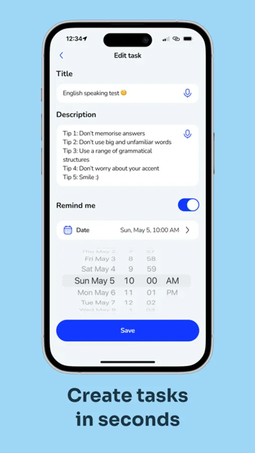 Quickly add tasks using voice input.