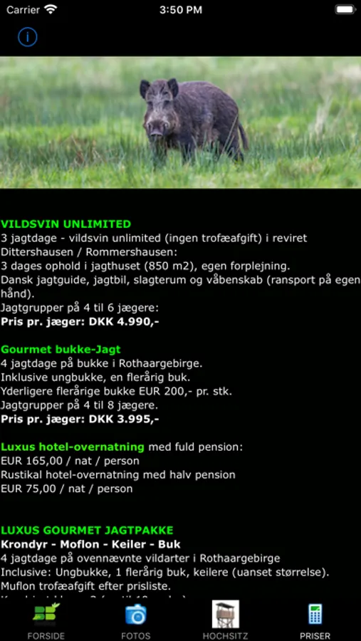 Der er mange fotos i appen fra selve "jagthytten", men også fra området og af vildt.