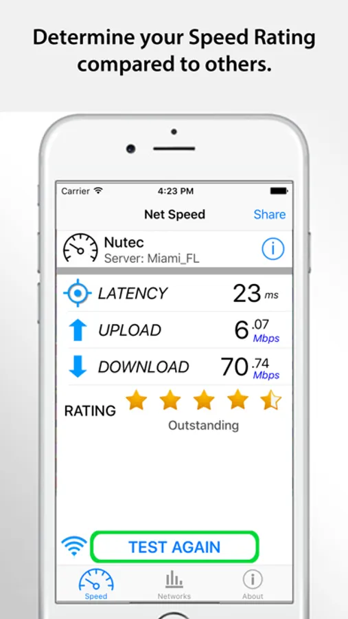 Use Net Speed to monitor your cellular (3G/4G/LTE) or WiFi connection rate and response for your device. With a real-time graphical display, results are updated continuously during the testing procedure. This simple, easy-to-use app provides consistent, accurate internet speed testing from any location. A simple test app to determine your true mobile speed.