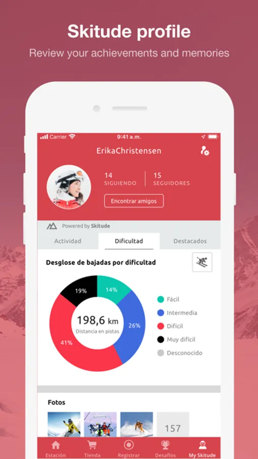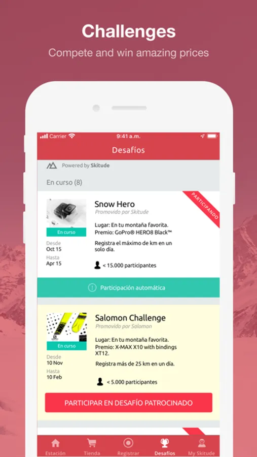 The App offers a range of features designed to optimize your experience before, during and after your trip. It’s very simple, plan your getaway and get real time updates on slope conditions. Set up your Skitude profile and track your activities on the slopes to get detailed stats about all your activities. And that’s not all, take part in challenges competing with the whole community, to be in with a chance of winning incredible prizes.
