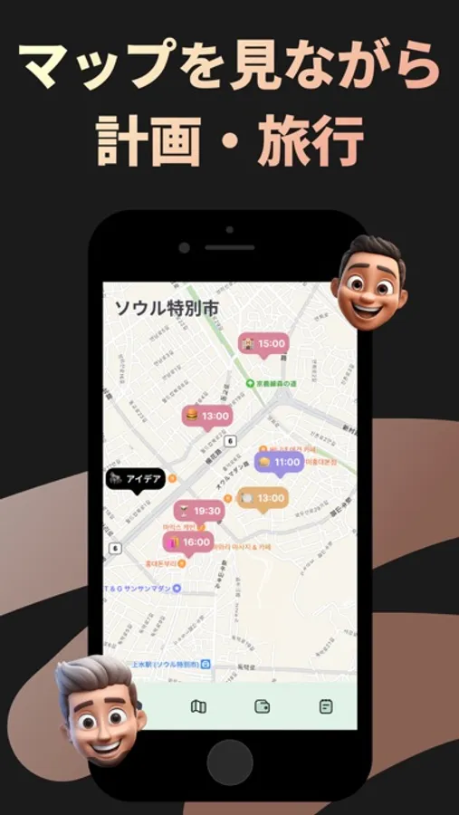 旅程表でどこで何をするかの一覧を作成できます。