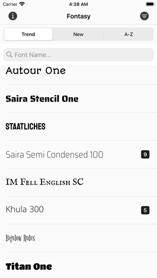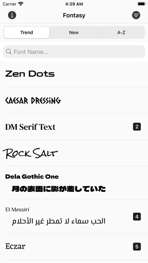 ・ Browse details of fonts send from other apps.