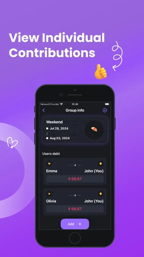 * Debt Management: Instantly see who owes whom and keep things balanced with easy settlement options.