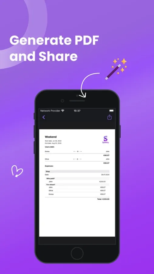 * Automatic Calculations: No more messy math! Splitility ensures fair and accurate expense splits.