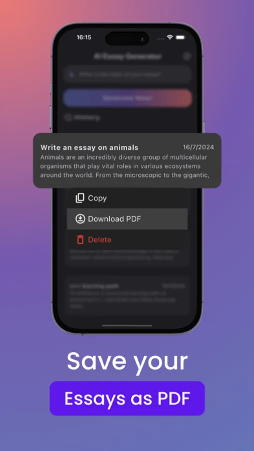 • User-Friendly Interface: On the app’s homepage, simply enter your prompt in the text field and click the “Generate” button. Let AI Essay Writer do the rest!