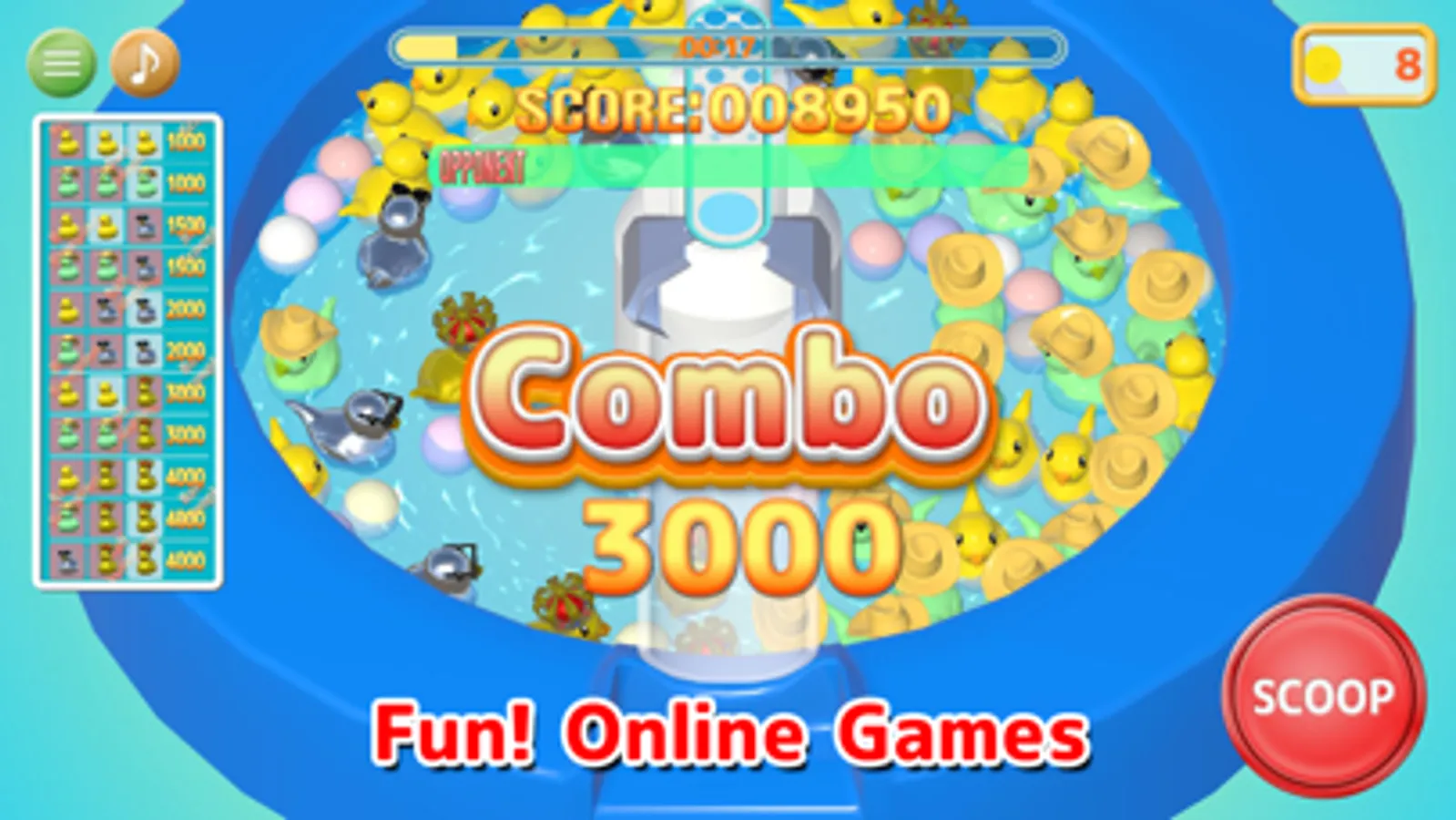 Players' strategies will be tested as they try to steadily scoop up ducks within the time limit to earn points, or try to get high-scoring combos and turn the game around.