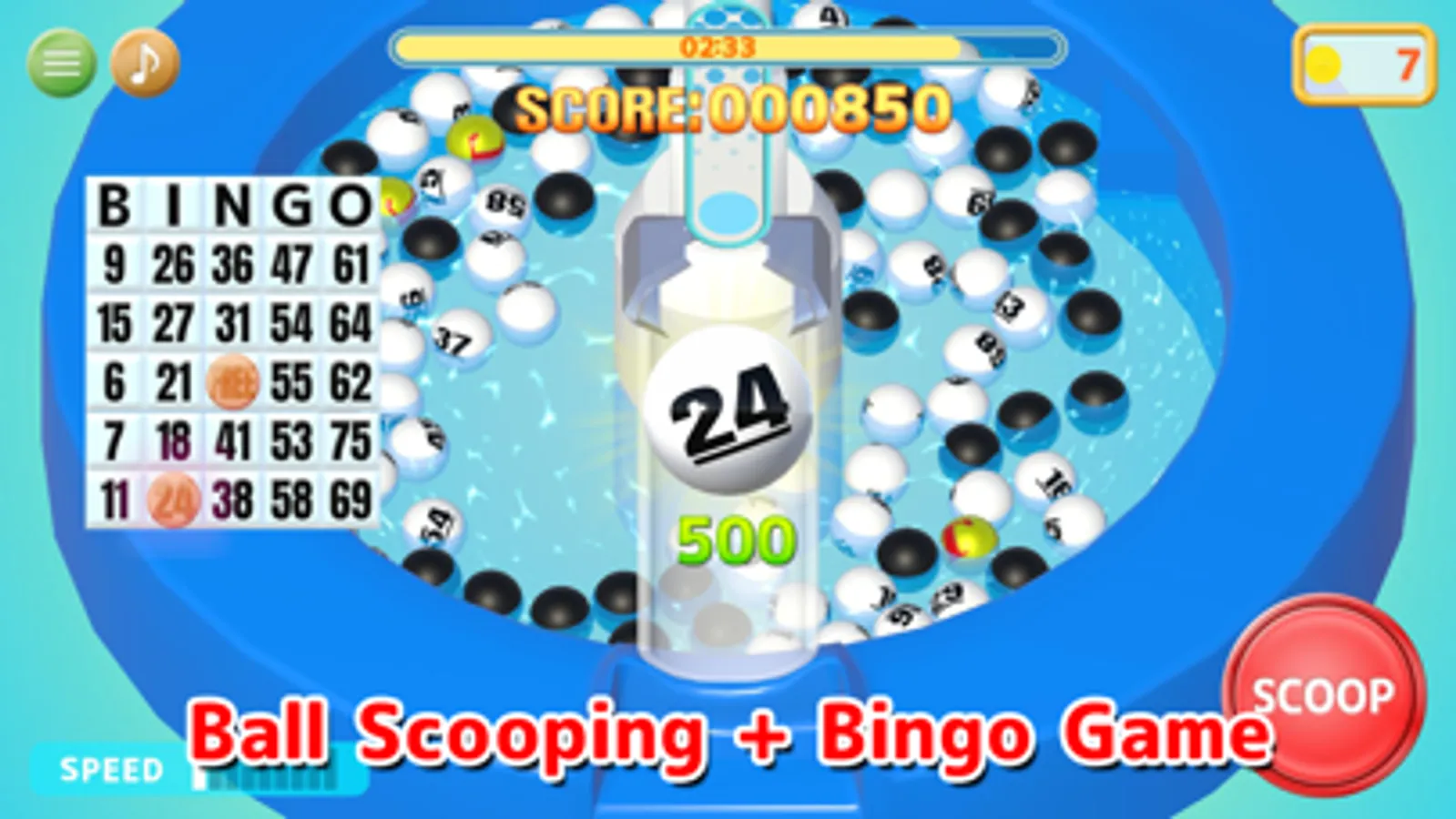Scoop up balls with numbers written on them floating in the pool, and if the numbers appear on the bingo chart, a mark will be placed on them. If you get marks vertically, horizontally, or diagonally, you get bingo.