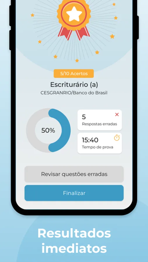 O app oferece simulados personalizados que permitem que você simule a experiência real das provas de concursos públicos. Com questões atualizadas e categorizadas por matéria e nível de dificuldade, você poderá testar seus conhecimentos de forma prática e objetiva.