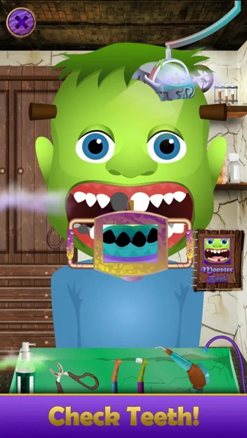 Use dentist tools including tooth brush, floss, bad breath mouth sprayer and more as you go through the cleaning stages.