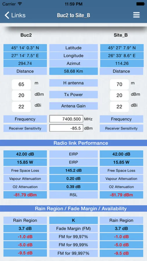 RF Haversine Lite is an application for iPhone and iPad with which you can quickly calculate a radio link budget: