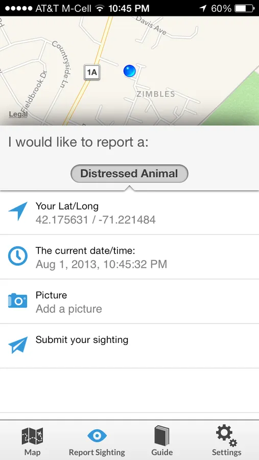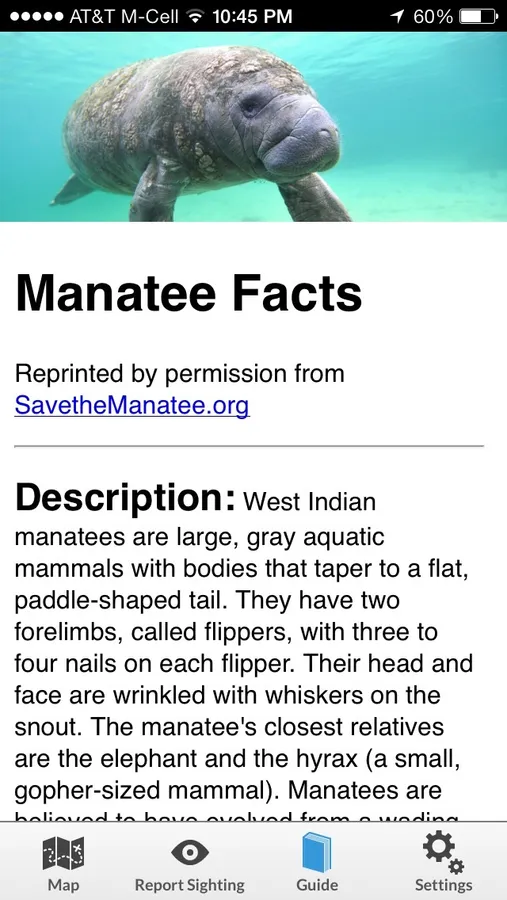 * Allows users to submit sightings of injured, distressed, or harassed manatees to the proper agencies