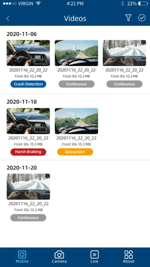 You can access your dashcam through a direct connection via Wi-Fi. Once connected, you can access all the videos stored on the dashcam's microSD card, adjust the camera angle as needed. Moreover, it offers the interface to calibrate the AI features, including ADAS and DMS.