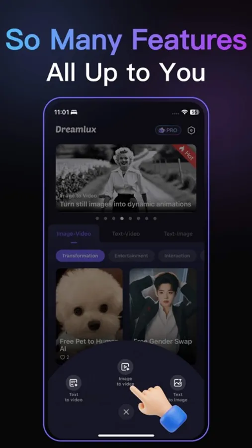 ► Pick from a variety of art styles Dreamlux offers a variety of art styles to choose from. Experiment with different styles, from cartoon-like pencil sketches to mind-blowing photorealism, and discover the one that best transforms your vision into stunning AI art."