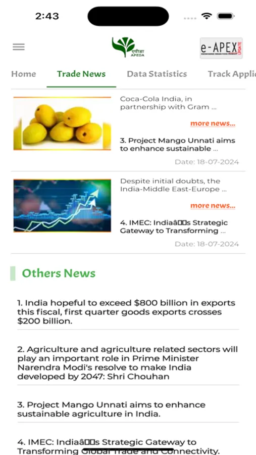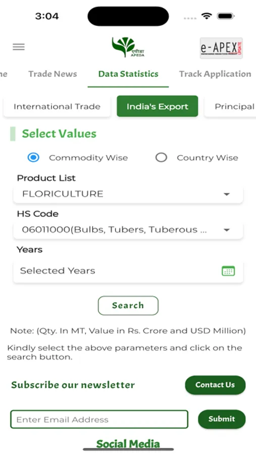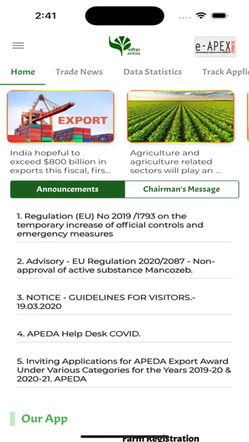 The APEDA app also facilitates subscription of daily newsletter along with other useful information such as registration procedure, Export Procedure, Trade Notices and various schemes implemented by APEDA