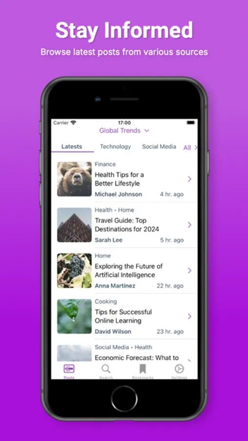 • Get the latest updates from your favorite blogs and news sites directly in your feed.