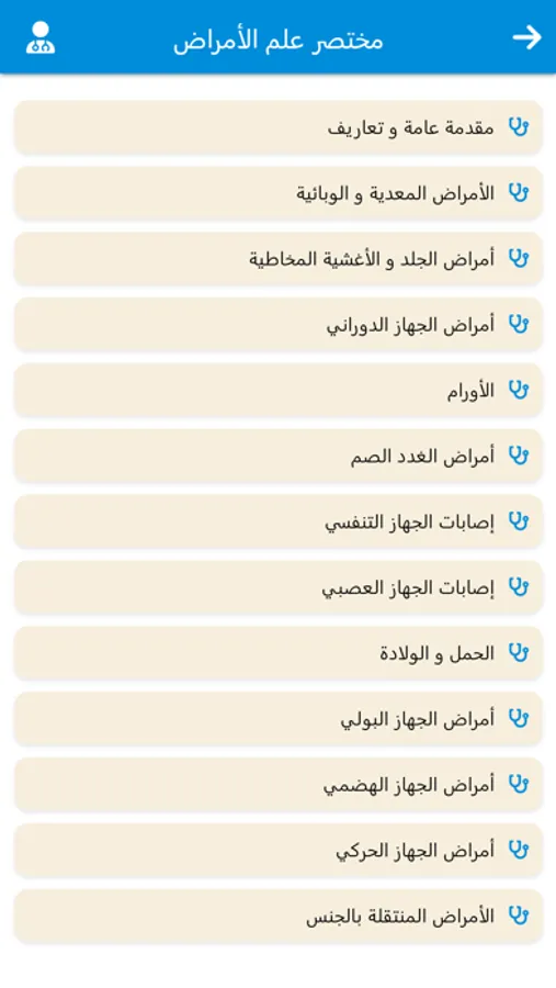 ويحتوي ايضا على مختصر علم الامراض لمراجعة سريعة لأمراض الانسان المختلفة.
