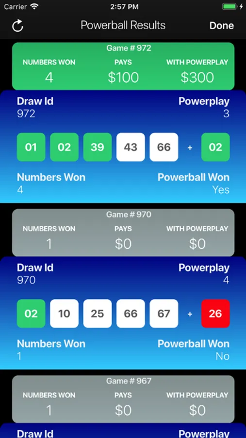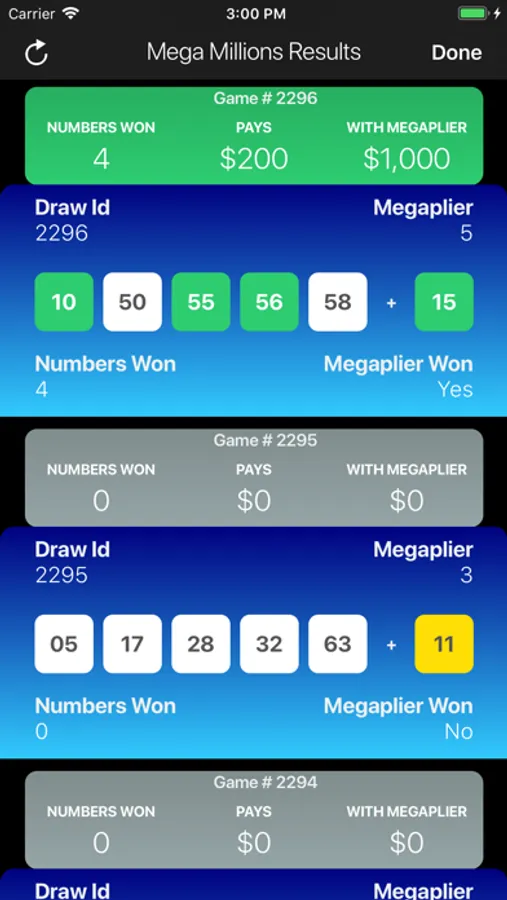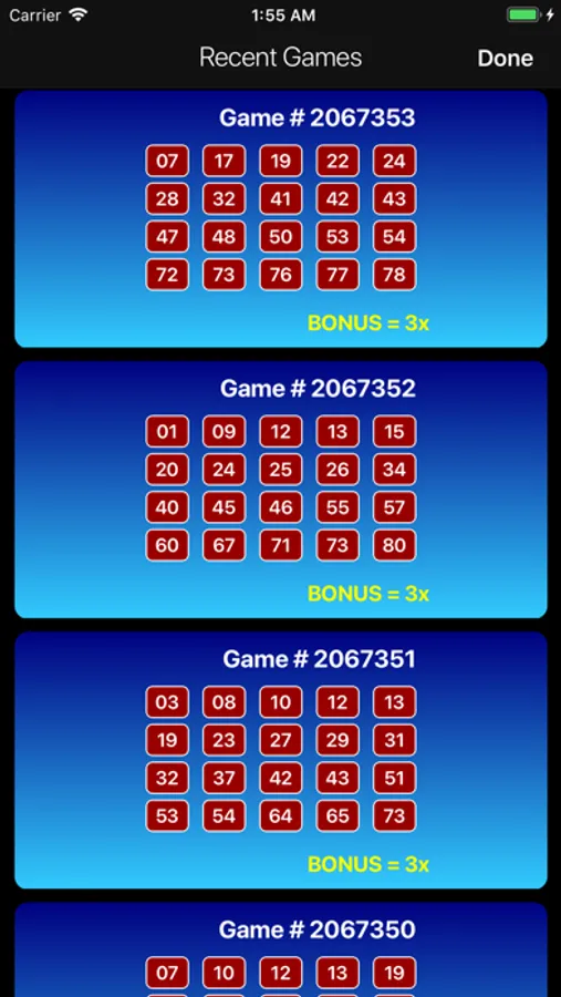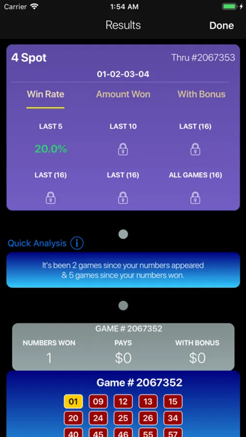 Automatically track your favorite number combination(s) throughout the day to see how often they win and how much with or without the bonus.