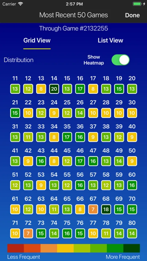 The app gives you real-time metrics to check which numbers, or combination are appearing the most or the least! Hot & Cold. Filter by the most recent 5,10,20,50,100 games, as well as other game ranges to compare results.