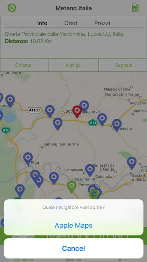 Trova il distributore di metano più vicino a te e naviga fino a raggiungerlo.
