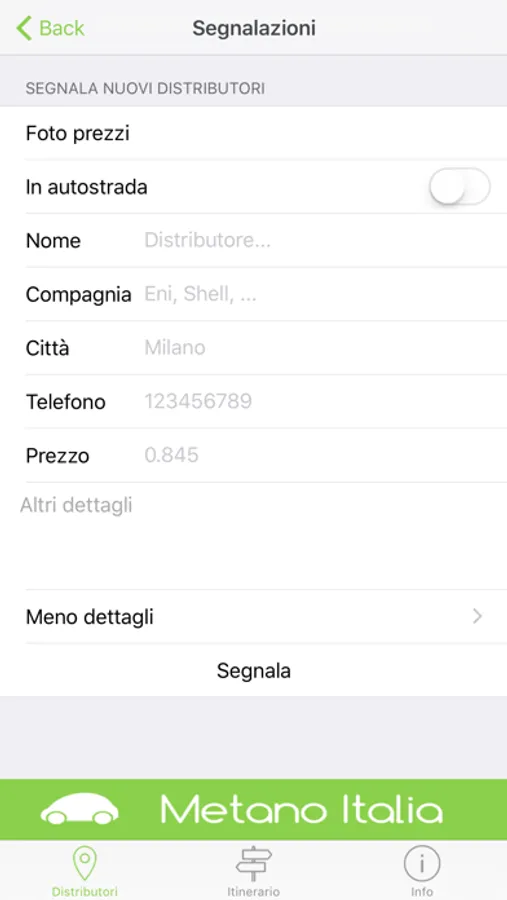 Funzionalità "Itinerario": visualizza tutti i distributori sulla tua strada con particolare evidenza per i distributori sulle autostrade.