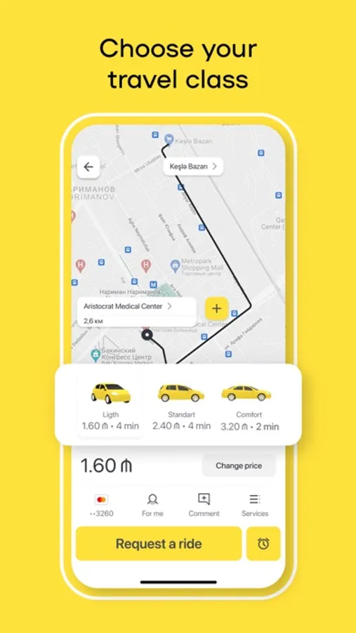 Pay for your trips with a card, cash or Umico bonuses (only available for users in Azerbaijan)