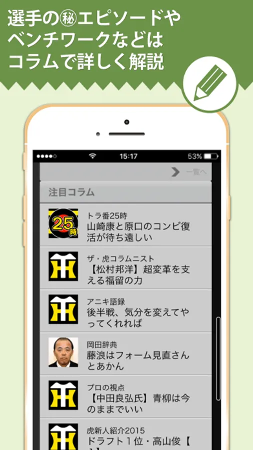 タイガースニュースは、速報から読み応えのある紙面記事、2軍情報までカバー。人気選手のニュースがバックナンバーでお読みいただけます。毎朝の阪神ニュース、試合終了時の結果をプッシュ通知でお知らせします。掲示板では応援、叱咤激励とも大歓迎!ただしタイガース愛のあふれるものをお願いします!