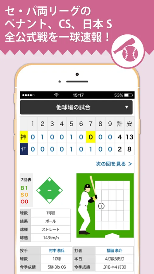 コラムも充実。ここでしか読めないコラムが多数あります。選手のマル秘エピソードやチームの戦力分析、試合でのベンチワークまでばっちり分かります。また、他チームのゲームも含め公式戦、クライマックスシリーズ、日本シリーズ全試合を一球ごとに速報します。