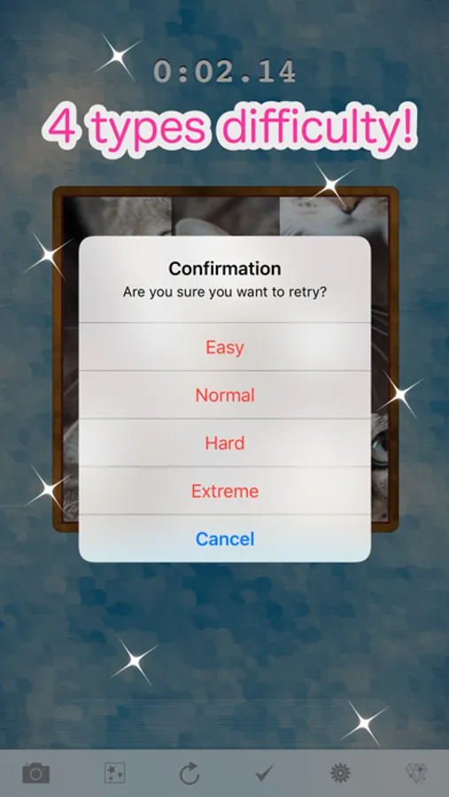 Also, the difficulties can be changed if you tap the right of photo icon.