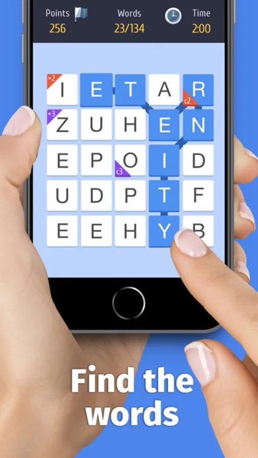 Every game against an opponent consists of three rounds. Each round is two minutes long. Your goal is to spell words and earn as many points as possible. But it won’t be easy! A word can be any part of speech, and bonus letters multiply your points.