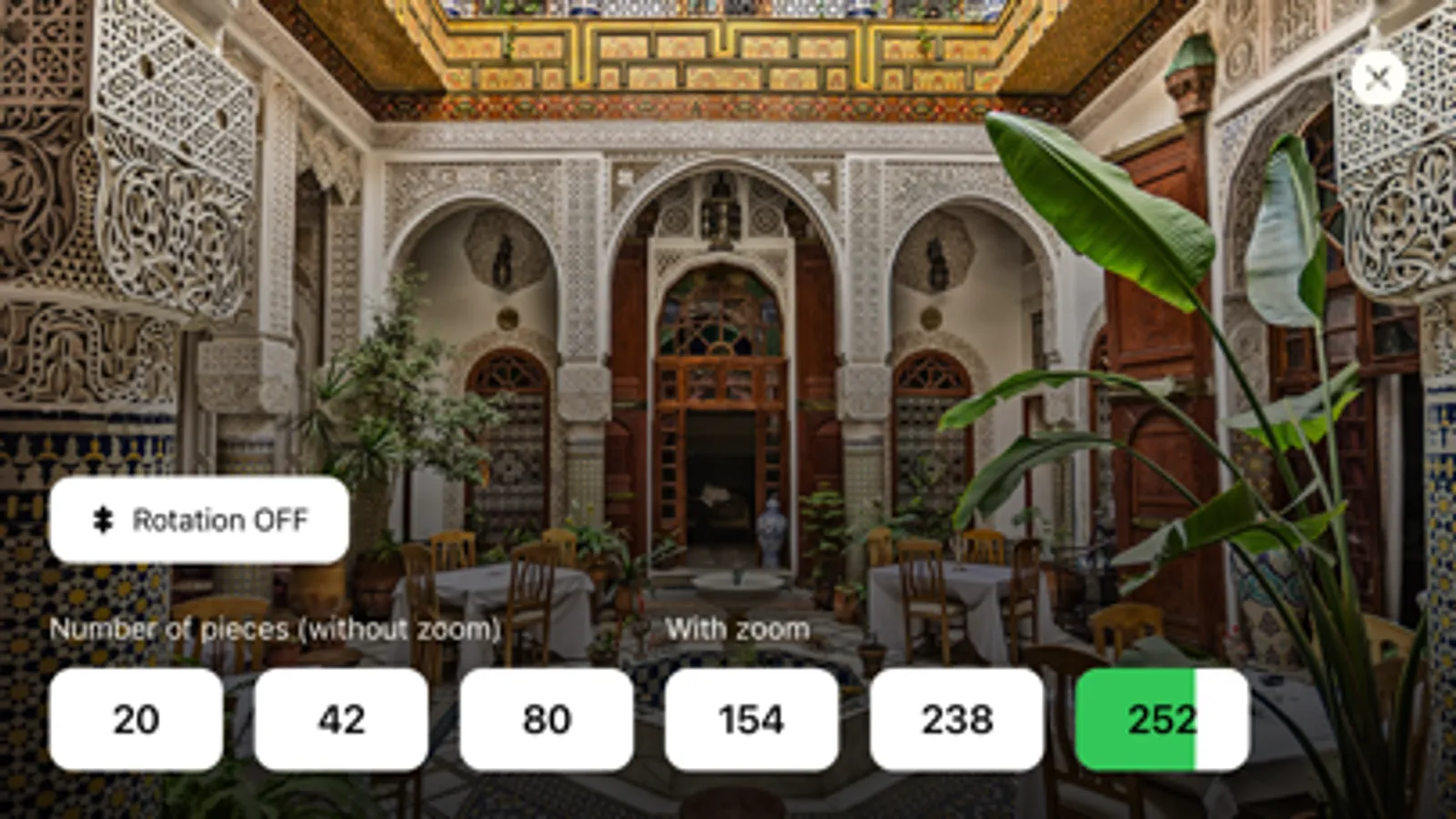 - 8 levels of complexity: from 42 pieces up to 1110 pieces, available for any puzzle;