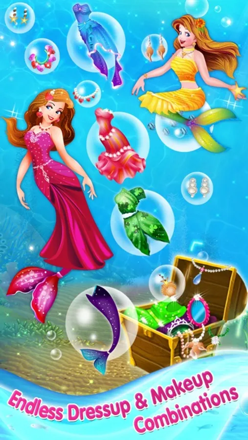 Even deep down underwater, you need to look your best! Your mermaid can wear dresses, skirts, and even shoes - wait, no, not shoes; they’re mermaids! But you can change the color of their tails! You can also do their makeup! Talk about luxury! But don’t forget their accessories, mermaids love to wear fancy bracelets, earrings, tiaras, and necklaces! Don’t fret, you can change the colors of their eyes, lips, and nails! Be sure to give them their favorite things to play with like violins and flutes, or even fans, pearls, and sea flowers! You can even change the fish swimming in the background!