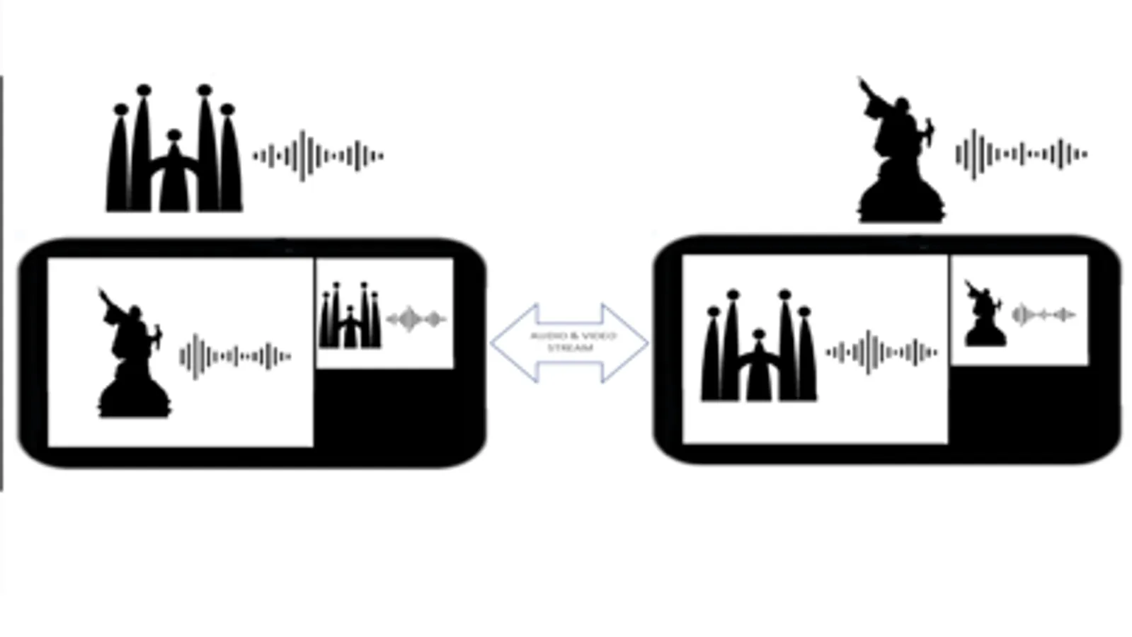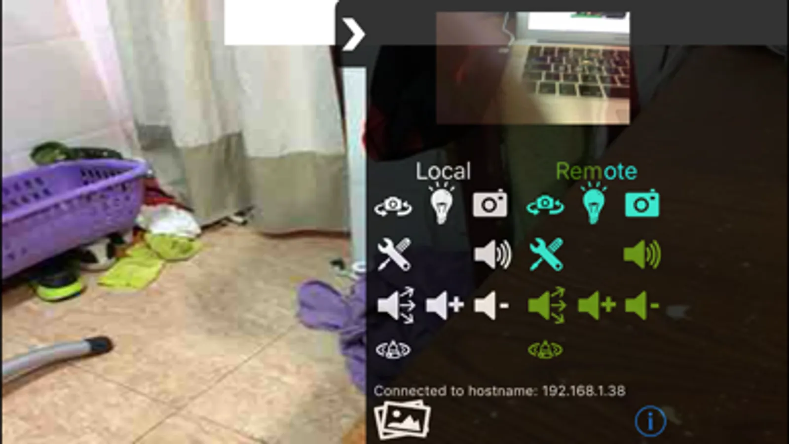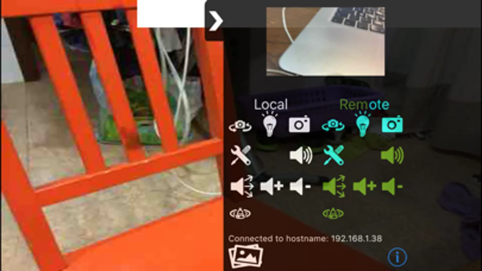 Lanza el programa en 2 dispositivos iphone o ipad dentro de una misma wiffi y automaticamente podrás ver la cámara y oír el audio de un dispositivo en el otro.