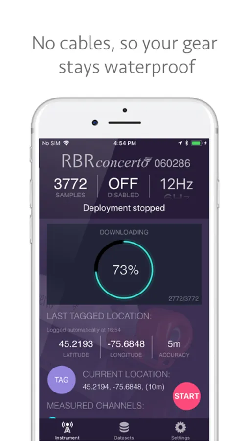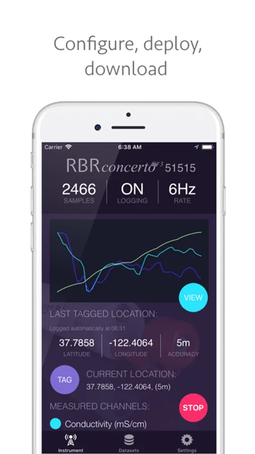 Ruskin for iOS makes it easy to wirelessly configure your logger, download, display, and sync your datasets back to the office. View profiles, tags and downloads on a map, and use the tracking feature to record detailed location information during your deployments.