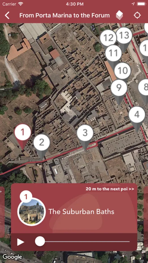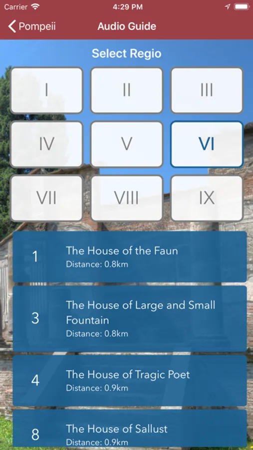 Audio in 6 languages, Italian, English, Spanish, French, German and Russian. Thanks to the GPS you can freely visit the city of Pompeii ruins in all its beauty, making you drive through the streets of over 2000 years ago. The list of points can be ordered alphabetically and by distance from your position. Do not miss a single detail, visit the immortal city in the best possible way. Pompeii, the stunning place!