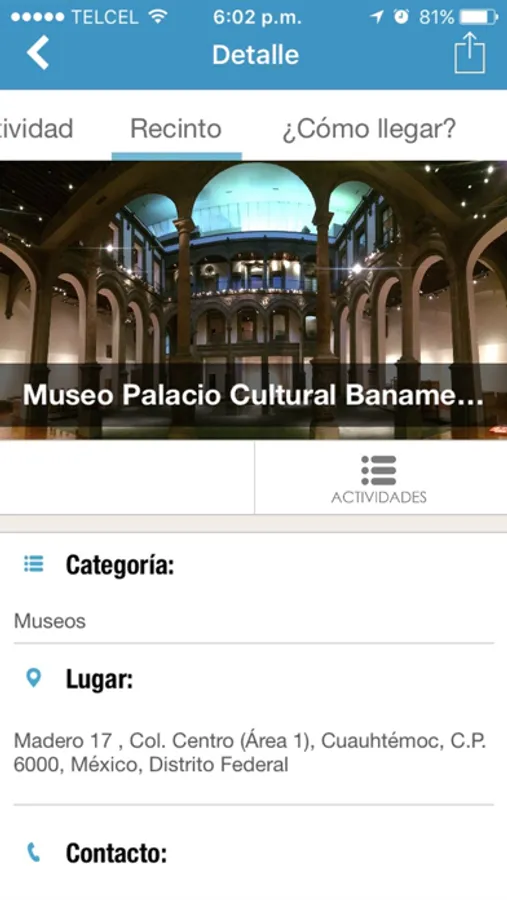 Entérate de las actividades culturales de México, sus reseñas, horarios y precios. Encuentra los recintos más importantes y ubícalos en el mapa. Comparte los contenidos en tus redes sociales.