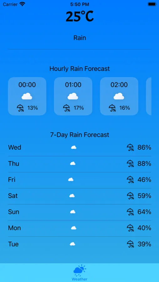 - Weekly Forecast: Plan ahead with a detailed seven-day weather forecast and rain probability.