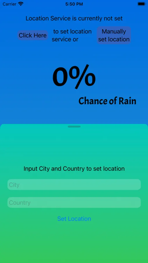 - Manual Location Input: Check the weather for any location worldwide. Simply input the city and country to receive accurate weather updates.
