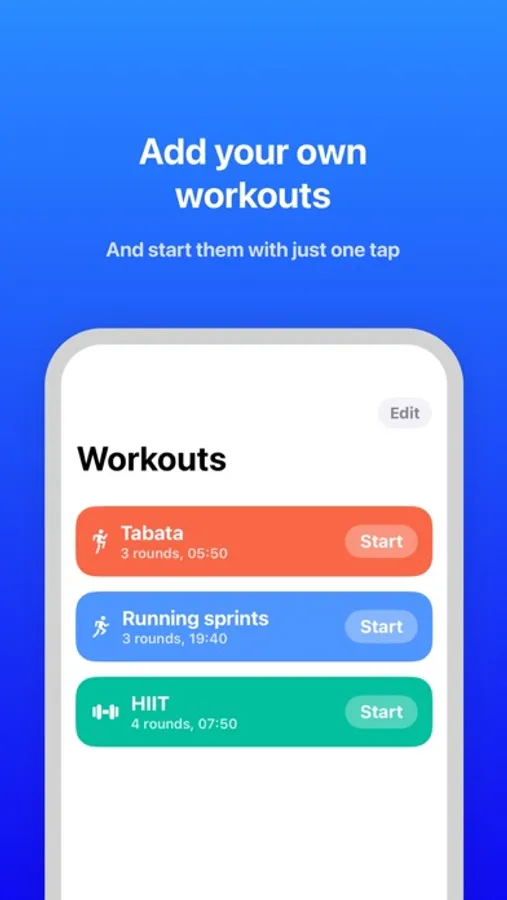 Introducing the ultimate Interval Timer app—your go-to companion for an efficient and customizable workout experience. Whether you're looking to jump straight into a session or craft a routine tailored to your fitness goals, our app has you covered: