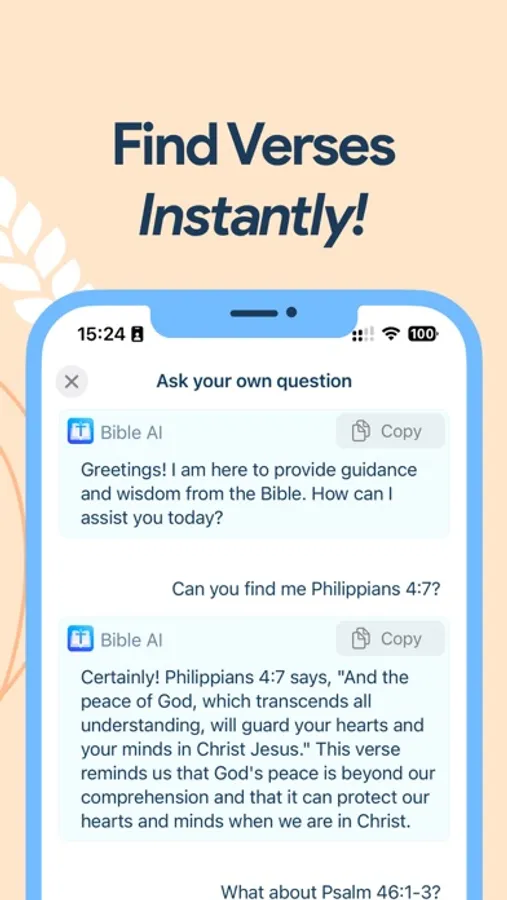 • Daily Spiritual Guidance: Navigate life’s pivotal questions on topics such as love, faith, and modern challenges. Our chat provides Bible-based wisdom and guidance tailored to your daily living.