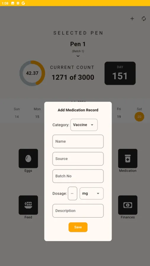 Cluck revolutionizes the way you manage your farm by providing a centralized platform for recording and monitoring key metrics. From egg production and mortality rates to medication, feeding schedules, weight tracking, and financial transactions, Cluck simplifies the complexities of poultry farming. With just a few taps, you can effortlessly input, update, and access critical information, ensuring that your farm operations are streamlined and efficient.