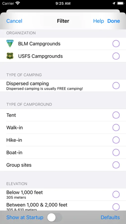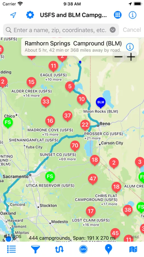 This app shows over 5,650 United States Forest Service (USFS) and Bureau of Land Management (BLM) campgrounds throughout the USA.